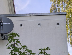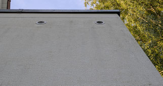 angrenzende Wohngebäude beschattet, in der Mittagshitze bekommt die Wand volle Sonne ab. Gegen die damit verbundene Hitzeentwicklung in den Nistkästen müssen ausreichende Gegenmaßnahmen getroffen
